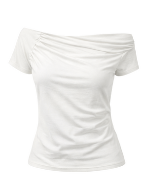 Effortlessly modern with a soft sculpted touch, the Shezami Asymmetrical Ruched Top is designed for everyday wear with elevated style. Featuring an asymmetrical neckline and subtle ruching, this top creates a flattering silhouette while maintaining a relaxed, comfortable fit. A versatile essential that transitions seamlessly from day to night.