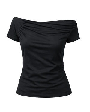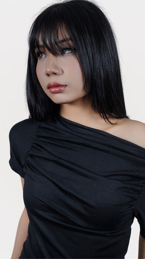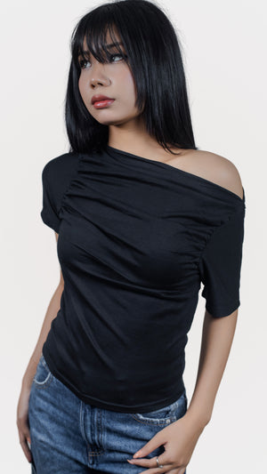 Effortlessly modern with a soft sculpted touch, the Shezami Asymmetrical Ruched Top is designed for everyday wear with elevated style. Featuring an asymmetrical neckline and subtle ruching, this top creates a flattering silhouette while maintaining a relaxed, comfortable fit. A versatile essential that transitions seamlessly from day to night.