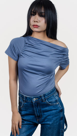 Effortlessly modern with a soft sculpted touch, the Shezami Asymmetrical Ruched Top is designed for everyday wear with elevated style. Featuring an asymmetrical neckline and subtle ruching, this top creates a flattering silhouette while maintaining a relaxed, comfortable fit. A versatile essential that transitions seamlessly from day to night.
