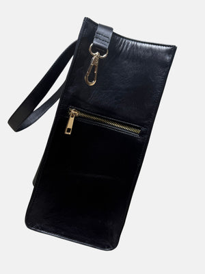 A sophisticated work and travel bag hybrid with an integrated luggage sleeve, a 16” laptop sleeve, and built-in 6 organizational compartments and pockets, crafted in fine-grained 100% leather. Perfect from 9 AM to after-hours !